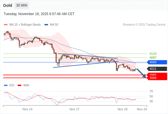 在 4060 之下,看跌,目标价位为 3985 ,然后为 3968 。