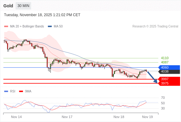 在 4060 之下,看跌,目标价位为 3997 ,然后为 3975 。
