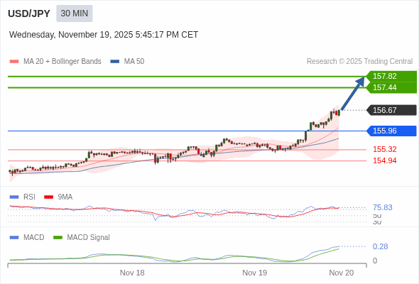 技术点评: RSI技术指标大于70。在这种情况下,说明有很强的上升趋势,或者意味着处在超买的状态下,可能会有向下的调整。我们将观察RSI技术指标是否出现背离现象。 MACD技术指标处在其信号线之上看多。 配置为正。 此外,价位高于其20天及50天移动平均线 ( 分别位于156.08 和155.71 )。