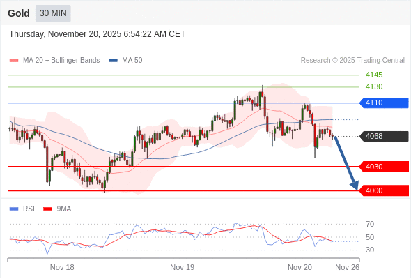 在 4110 之下,看跌,目标价位为 4030 ,然后为 4000 。
