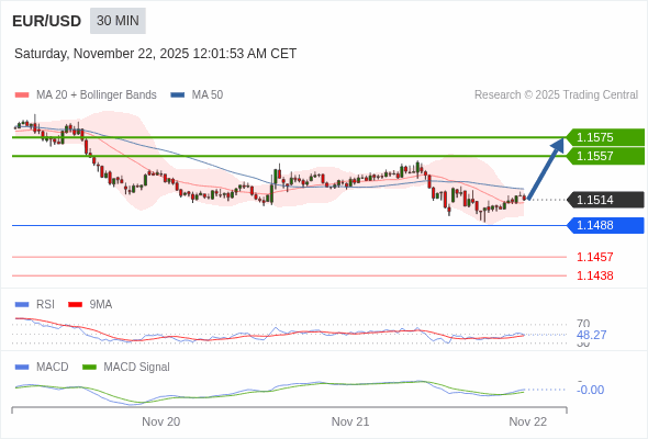 交易策略: 有上涨的可能,目标价位定在 1.1575 。
