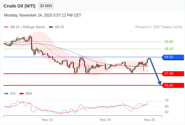 交易策略: 在 58.55 之下,看跌,目标价位为 57.35 ,然后为 56.60 。