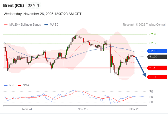 交易策略: 在 62.15 之下,看跌,目标价位为 61.40 ,然后为 61.00 。