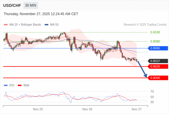 在 0.8065 之下,看跌,目标价位为 0.8025 ,然后为 0.8000 。