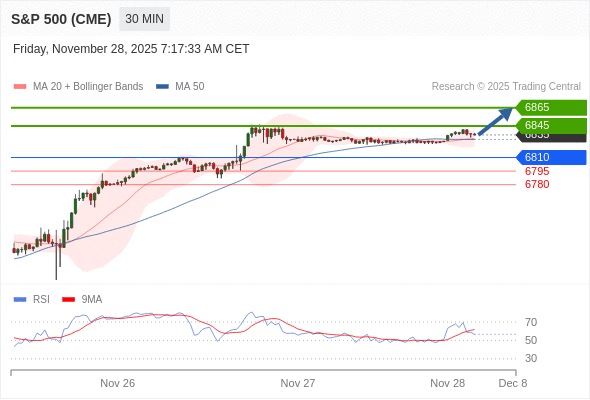 在 6810 之上,看涨,目标价位为 6845 ,然后为 6865 。