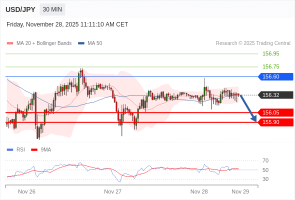 在 156.60 之下,看跌,目标价位为 156.05 ,然后为 155.90 。