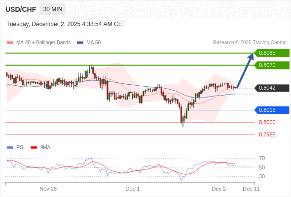 在 0.8015 之上,看涨,目标价位为 0.8070 ,然后为 0.8085 。