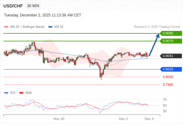 在 0.8015 之上,看涨,目标价位为 0.8070 ,然后为 0.8085 。