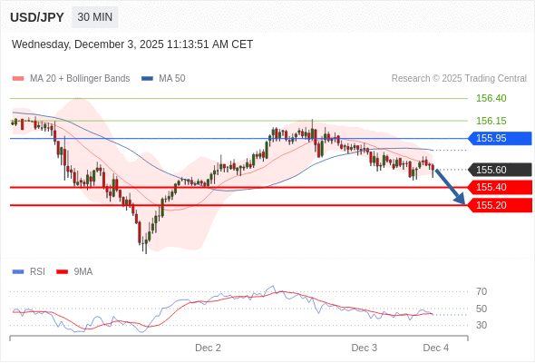 在 155.95 之下,看跌,目标价位为 155.40 ,然后为 155.20 。