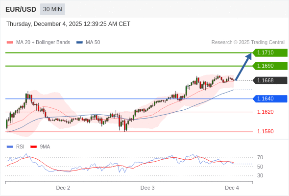 交易策略: 在 1.1640 之上,看涨,目标价位为 1.1690 ,然后为 1.1710 。