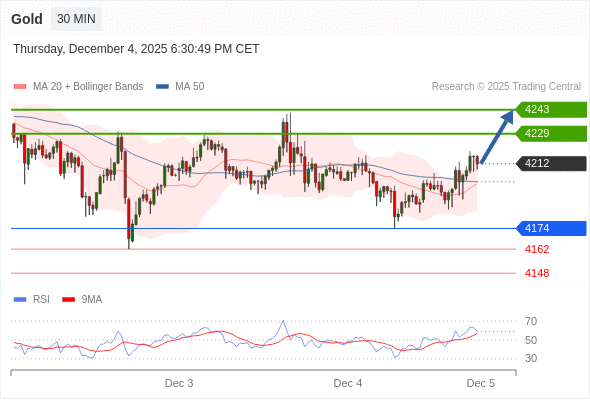 在 4174 之上,看涨,目标价位为 4229 ,然后为 4243 。