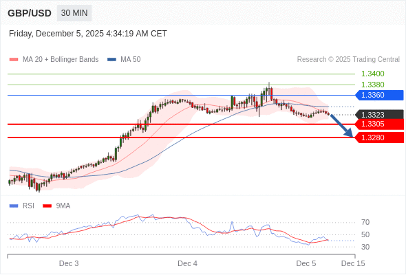 交易策略: 在 1.3360 之下,看跌,目标价位为 1.3305 ,然后为 1.3280 。