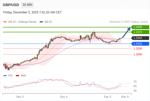 在 1.3315 之上,看涨,目标价位为 1.3375 ,然后为 1.3400 。