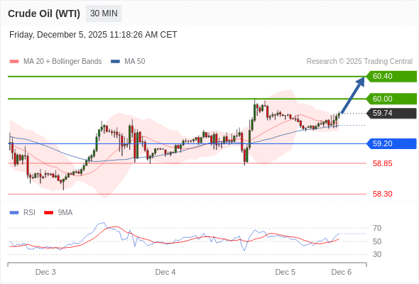 在 59.20 之上,看涨,目标价位为 60.00 ,然后为 60.40 。