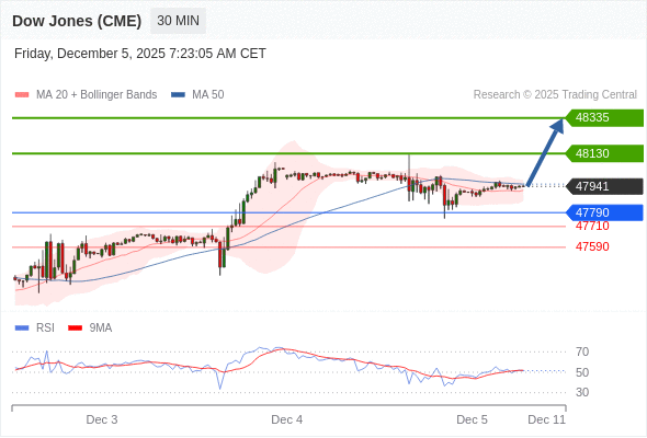在 47790 之上,看涨,目标价位为 48130 ,然后为 48335 。
