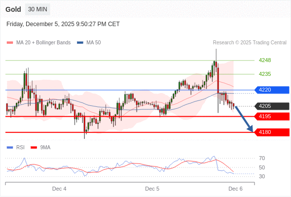 在 4220 之下,看跌,目标价位为 4195 ,然后为 4180 。