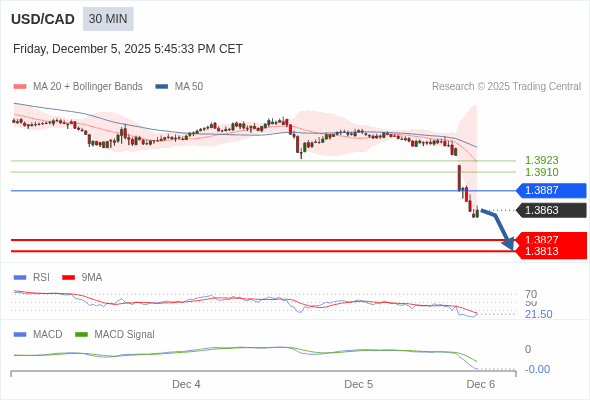 美元/加元 当日内 : RSI是超卖的