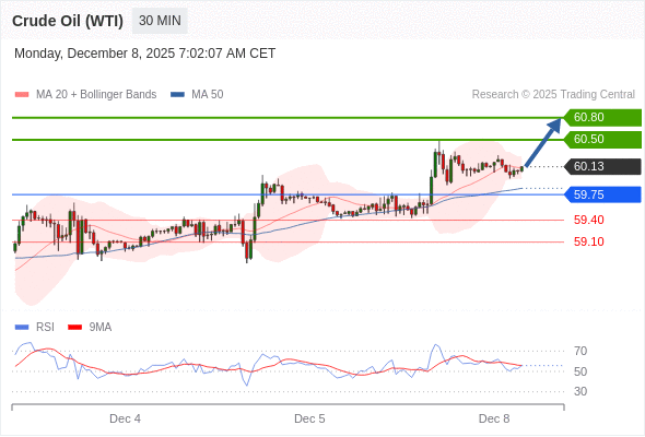 在 59.75 之上,看涨,目标价位为 60.50 ,然后为 60.80 。