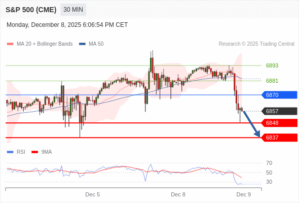在 6870 之下,看跌,目标价位为 6848 ,然后为 6837 。