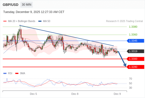 在 1.3345 之下,看跌,目标价位为 1.3300 ,然后为 1.3280 。