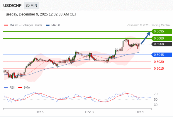 在 0.8045 之上,看涨,目标价位为 0.8080 ,然后为 0.8095 。