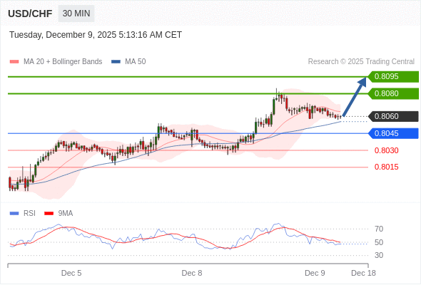 在 0.8045 之上,看涨,目标价位为 0.8080 ,然后为 0.8095 。