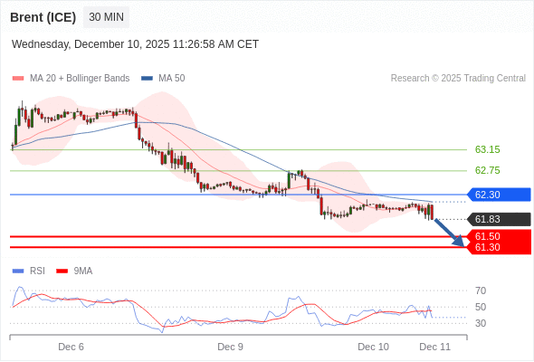 在 62.30 之下,看跌,目标价位为 61.50 ,然后为 61.30 。
