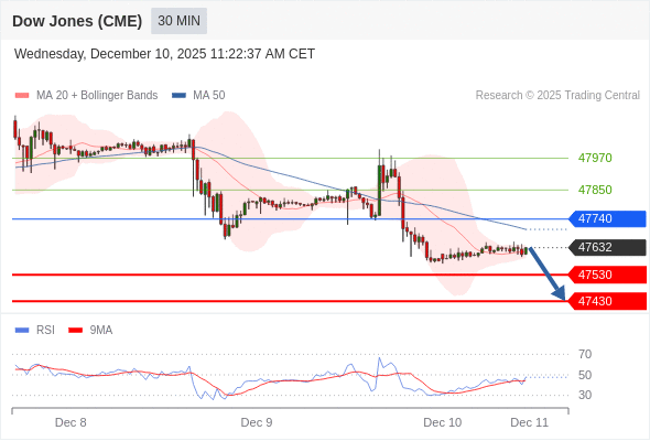 在 47740 之下,看跌,目标价位为 47530 ,然后为 47430 。