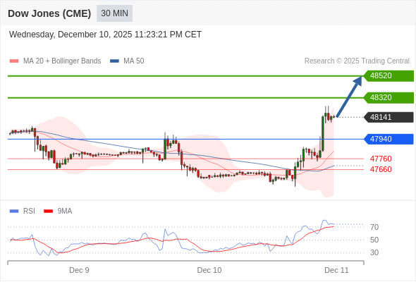 在 47940 之上,看涨,目标价位为 48320 ,然后为 48520 。