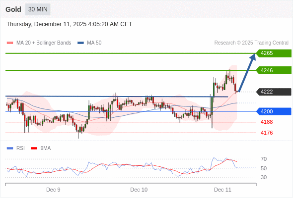 在 4200 之上,看涨,目标价位为 4246 ,然后为 4265 。