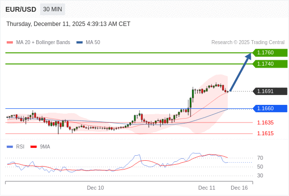 交易策略: 在 1.1660 之上,看涨,目标价位为 1.1740 ,然后为 1.1760 。