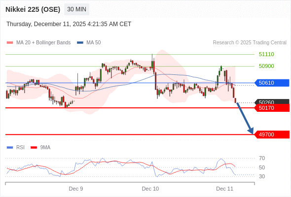 在 50610 之下,看跌,目标价位为 50170 ,然后为 49700 。