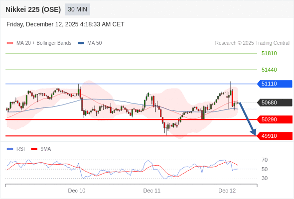在 51110 之下,看跌,目标价位为 50290 ,然后为 49910 。