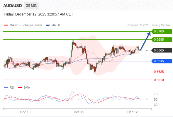 在 0.6645 之上,看涨,目标价位为 0.6685 ,然后为 0.6700 。
