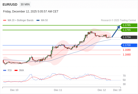 在 1.1700 之上,看涨,目标价位为 1.1765 ,然后为 1.1785 。