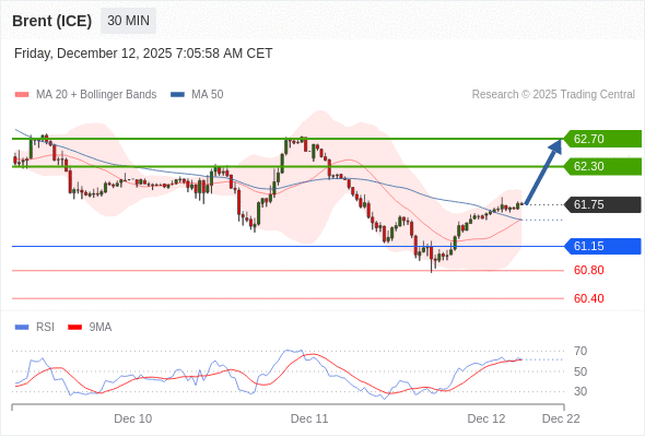 在 61.15 之上,看涨,目标价位为 62.30 ,然后为 62.70 。