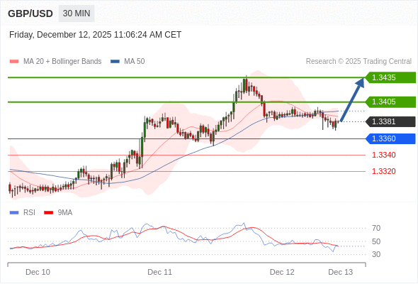 在 1.3360 之上,看涨,目标价位为 1.3405 ,然后为 1.3435 。