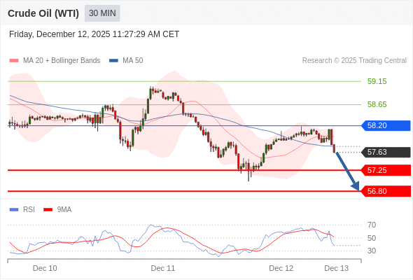 在 58.20 之下,看跌,目标价位为 57.25 ,然后为 56.80 。