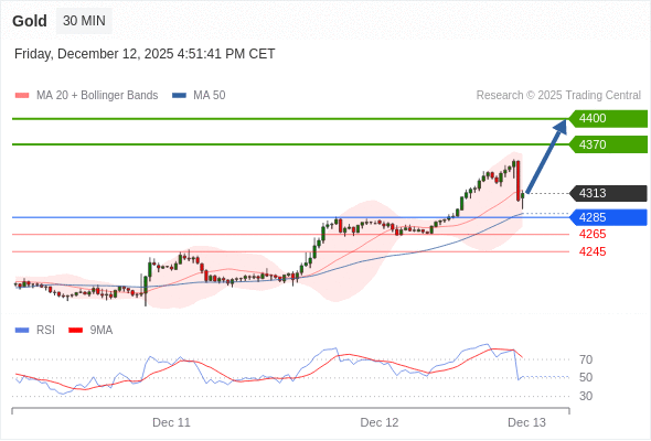 在 4285 之上,看涨,目标价位为 4370 ,然后为 4400 。