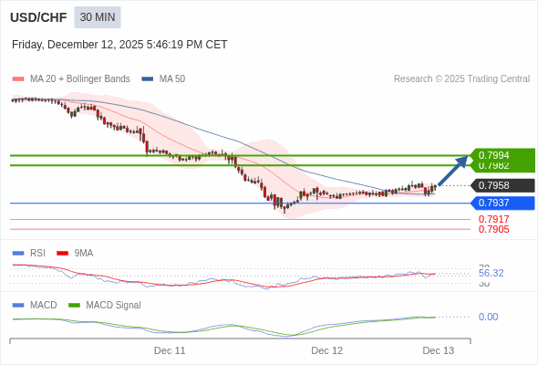 美元/瑞郎 当日内 : 看涨,当 0.7937 为支撑位。