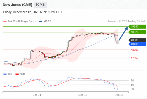 在 48430 之上,看涨,目标价位为 48920 ,然后为 49140 。