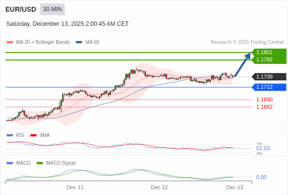 欧元/美元 当日内 : 看涨,当 1.1712 为支撑位。