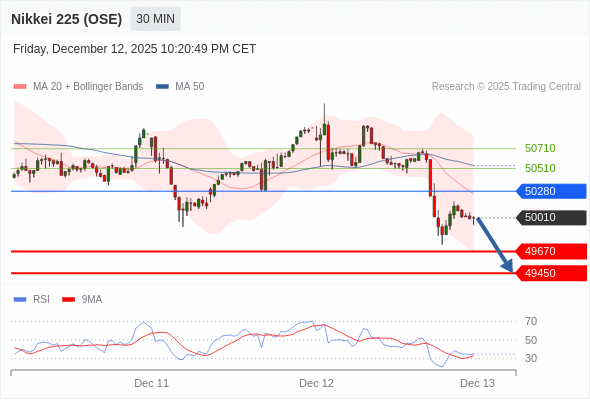 交易策略: 在 50280 之下,看跌,目标价位为 49670 ,然后为 49450 。