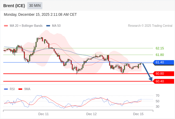 在 61.40 之下,看跌,目标价位为 60.80 ,然后为 60.40 。