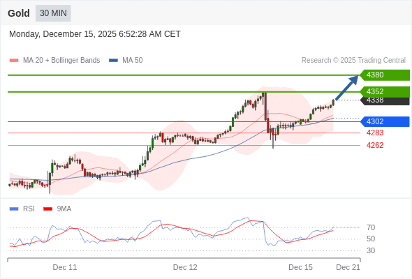 在 4302 之上,看涨,目标价位为 4352 ,然后为 4380 。