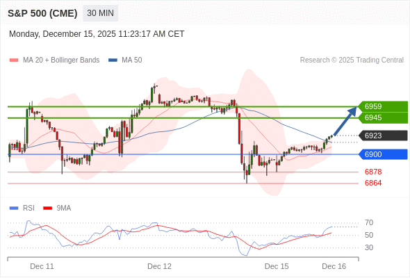在 6900 之上,看涨,目标价位为 6945 ,然后为 6959 。