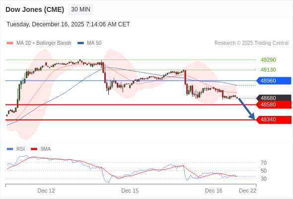 在 48960 之下,看跌,目标价位为 48580 ,然后为 48340 。