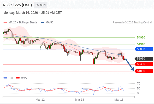 在 53850 之下,看跌,目标价位为 52480 ,然后为 51850 。
