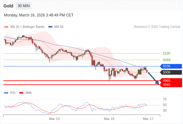 在 5036 之下,看跌,目标价位为 4965 ,然后为 4945 。