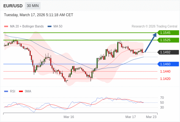 交易策略: 在 1.1460 之上,看涨,目标价位为 1.1525 ,然后为 1.1545 。